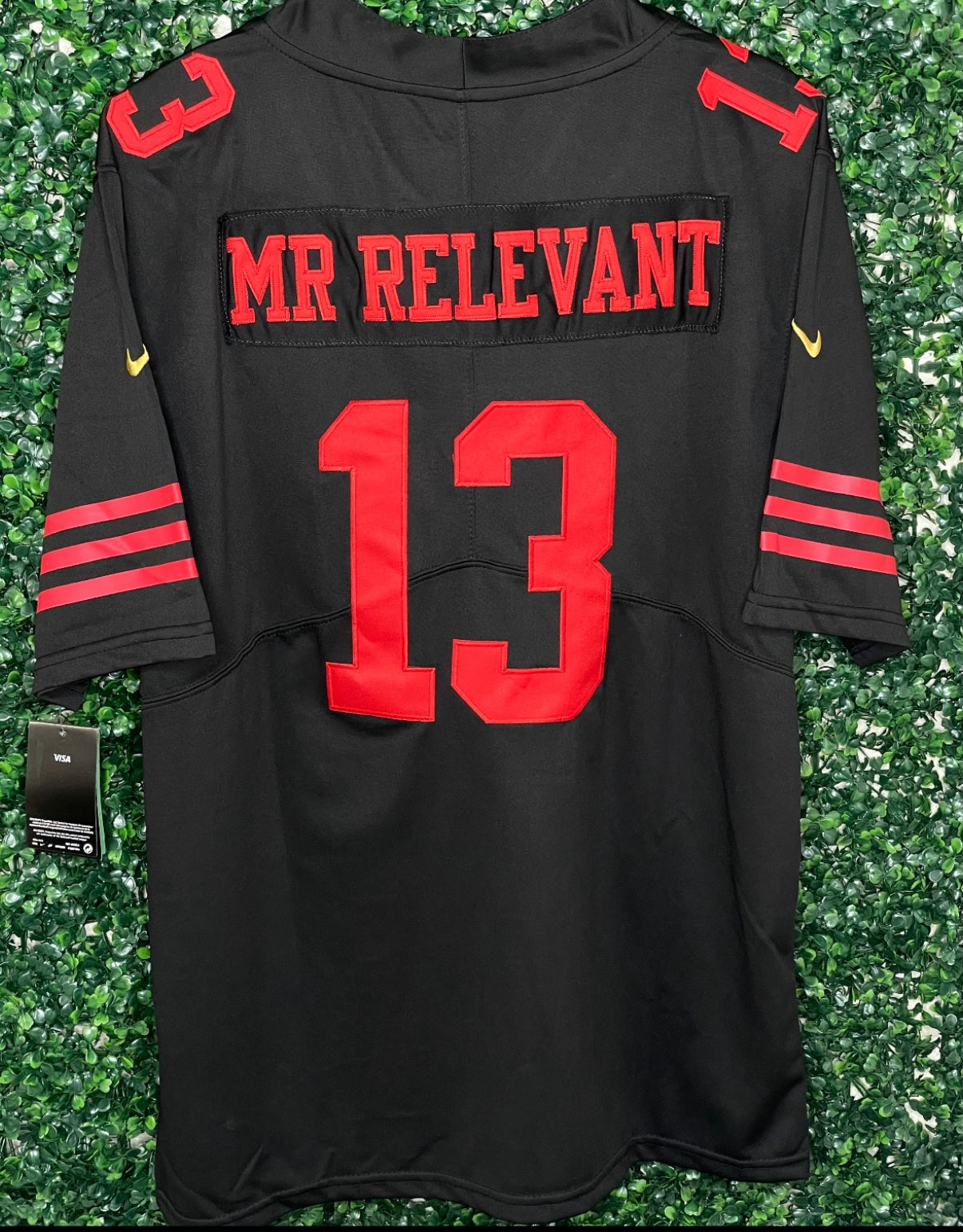 MENS SAN FRANCISCO 49ERS BROCK PURDY “MR RELEVANT” #13 BLACK JERSEY